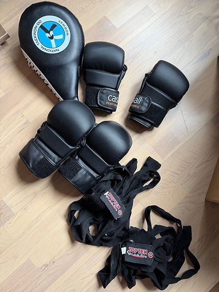 Hodebeskytter Taekwondo+ noen gamle boksehansker, se bilder