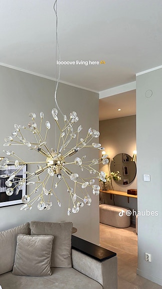 Helt ny taklampe i gull selges. Kjøpte to, men skal bare ha én.