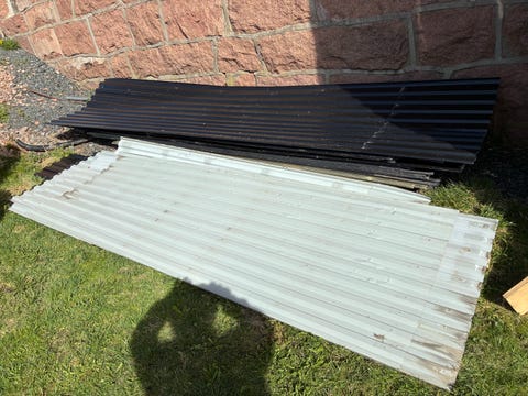 Takplater svart stål aldr vært brukt kun stått stablet ute.