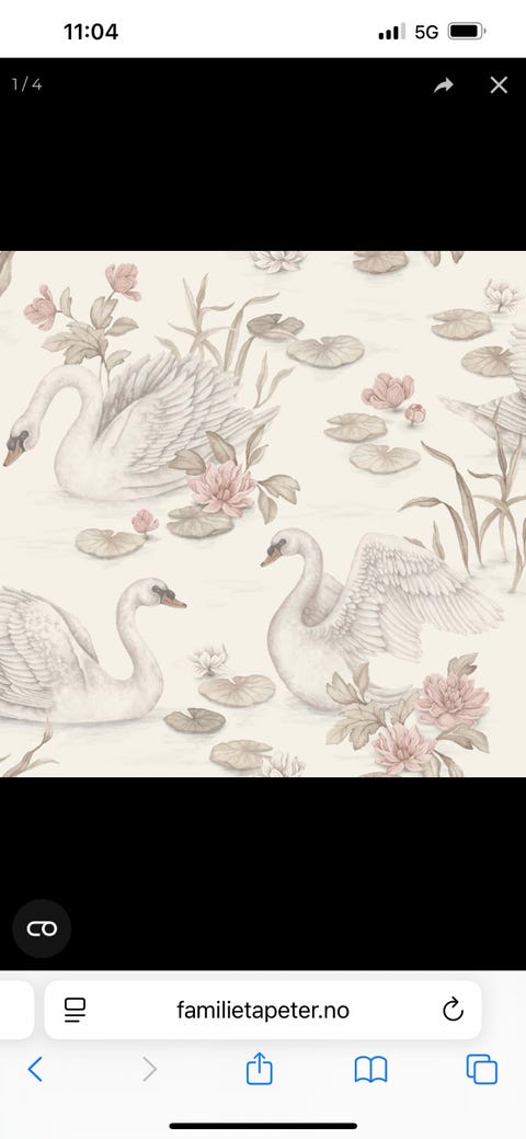 Tapet med svanemotiv i lyse farger