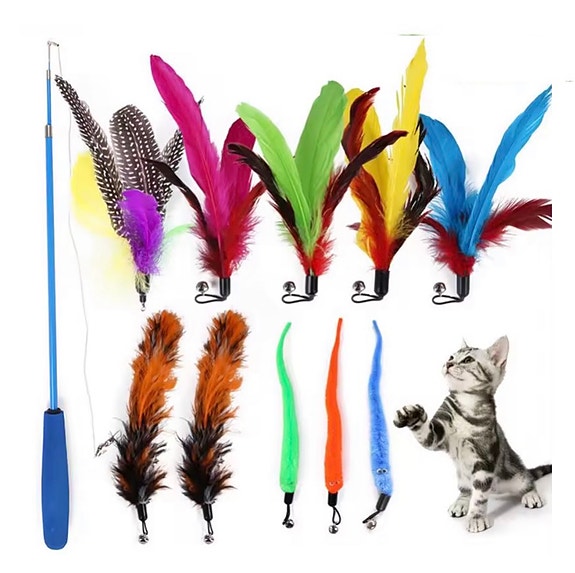 NY 🌟 Elastisk teleskop stang med 11 utskiftbare leke-fjær
