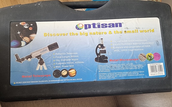 Optisan teleskop og mikroskop sett i koffert