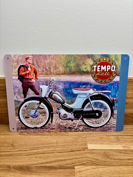 Tempo Corvette moped skilt – 20×30 cm, nytt (perfekt julegave)