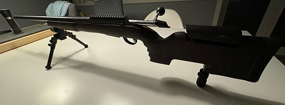Tikka T3 308 på 2,6 kg med karbonstokk og tykk flutet pipe