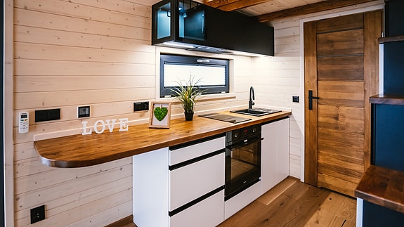Mobil minihus Ola 3x8,5m kompakt, helårig og full av sjarm mikrohus / hytte