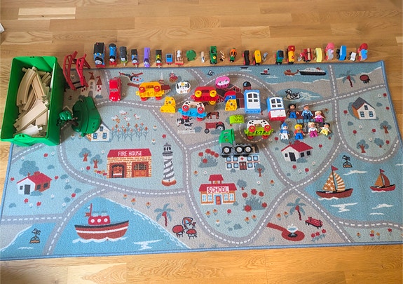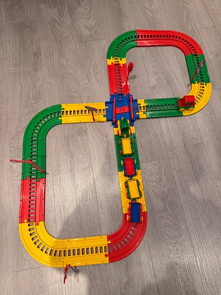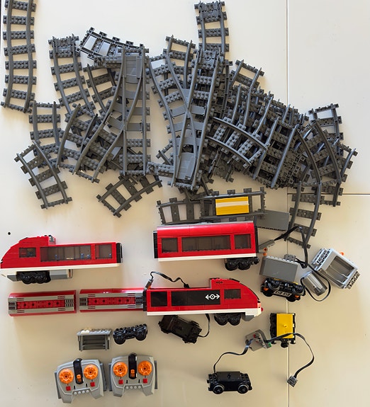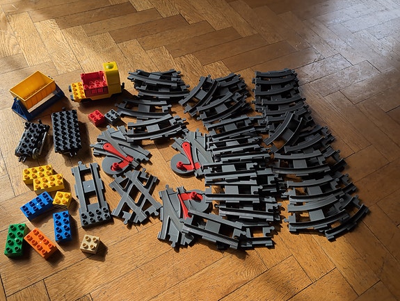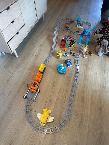 LEGO DUPLO togbane med omlag 100 skinner og togdeler