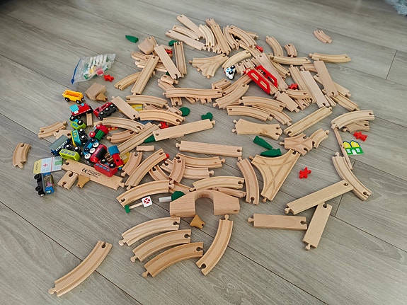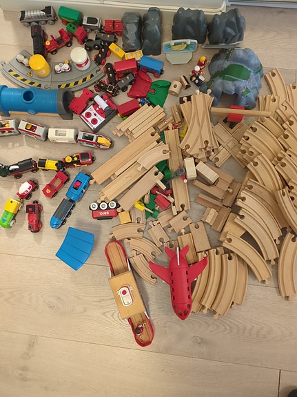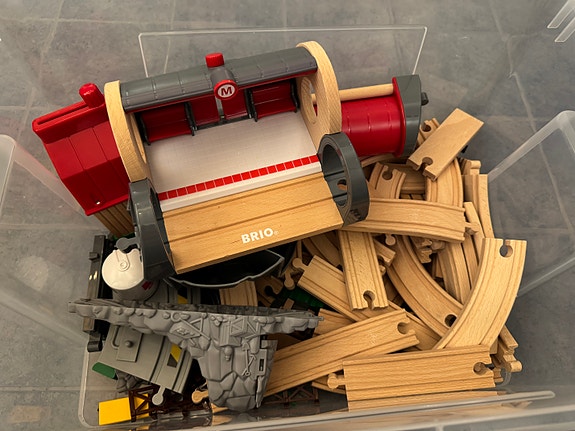 BRIO togbane med masse tre-skinner, tog og tilbehør 🤩🤩🤩