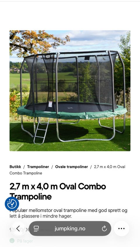 Trampoline - Jumpking - Oval 4,9mx3,7m (innvendig mål)