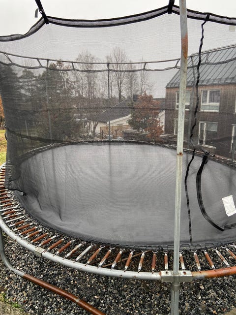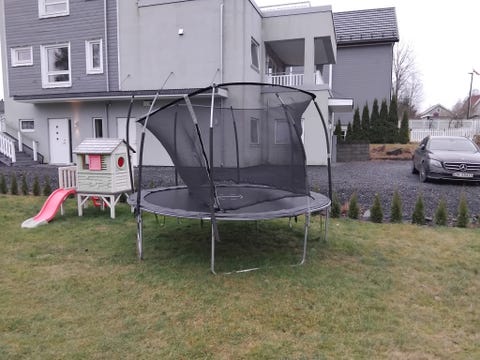 Trampoline fra obs gis bort