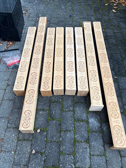 Trelast. Lafte marial, Søyler, kjøkken, Trapper, Villmarkskledning