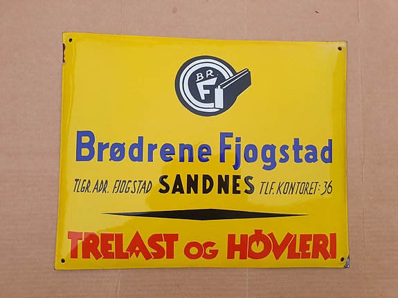 BRØDRENE FJOGSTAD. EMALJESKILT. SKILT. SANDNES. EMALJE SKILT. TRELAST. HØVLERI.