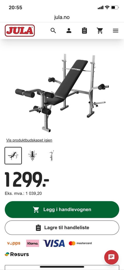 Treningsbenk med 80kg total vekt