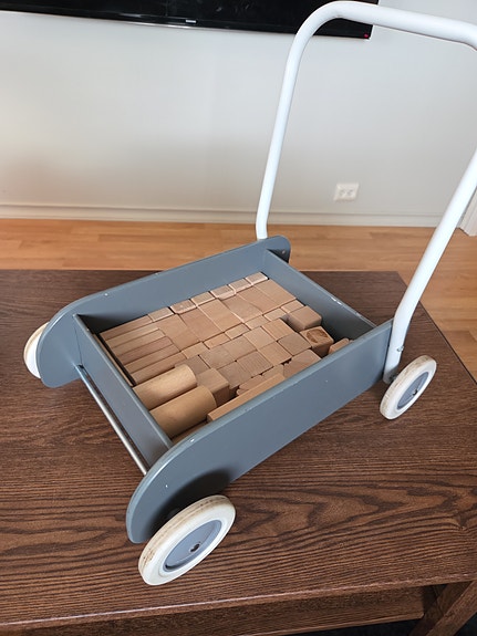 Trillevogn med byggeklosser