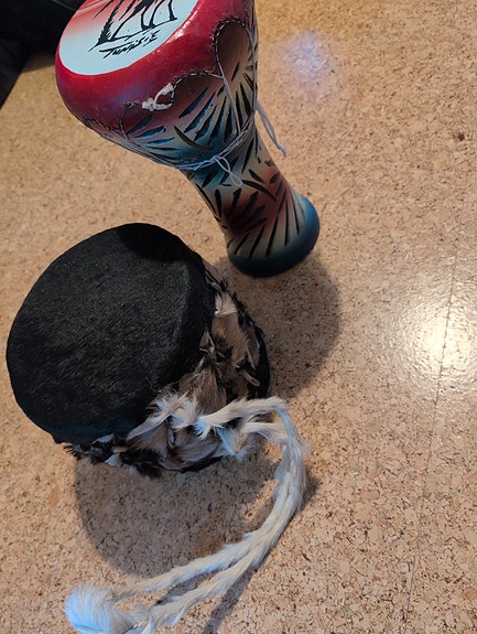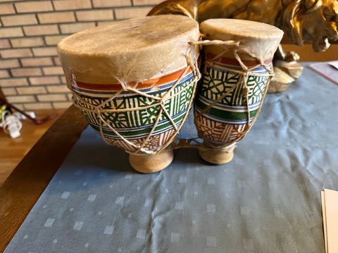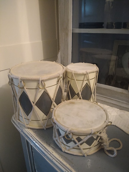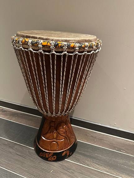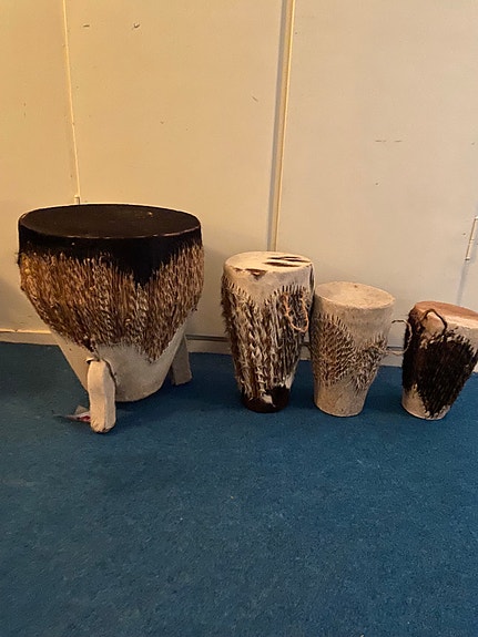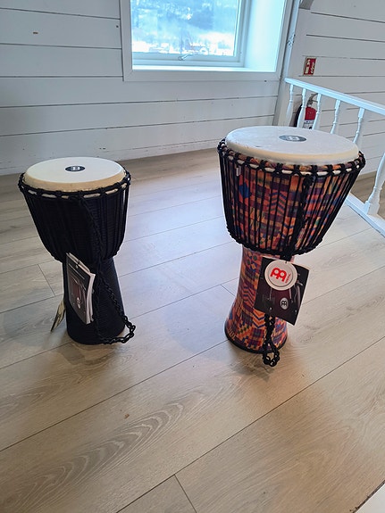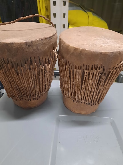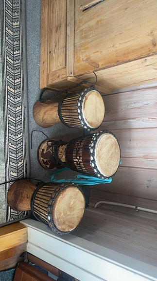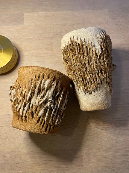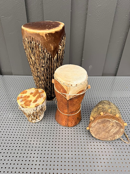 Ukjent merke håndlagde trommer sett naturfarget skinn