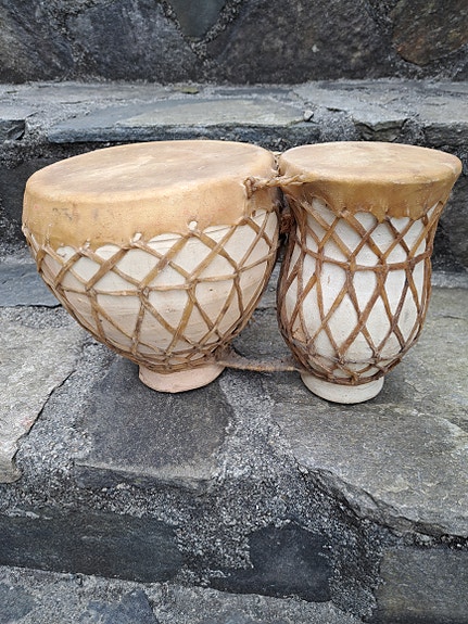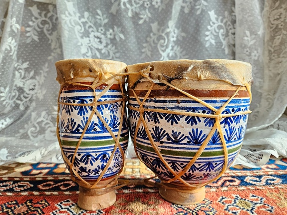 To unike, håndlagde etniske trommer (Tunisia / Afrika)