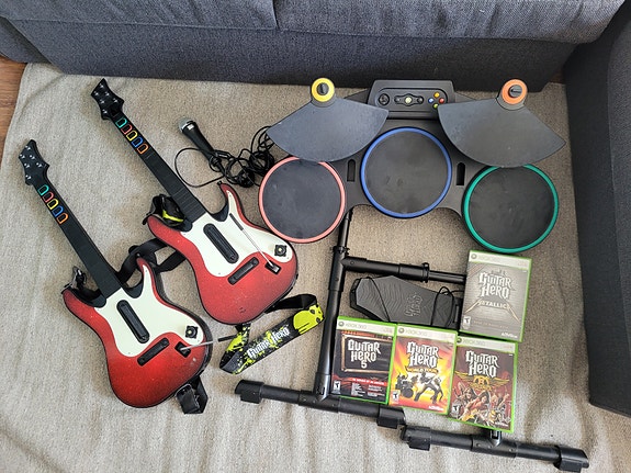 🎸 Guitar Hero bandpakke Xbox 360 – Trommer, 2 gitarer, mikrofon, 4 spill