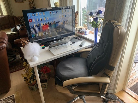 Kompl. Kontor Plass -Skrivebord m/Tv Skjerm Skinn-Stol Vipp Sitte-Pute Massasje