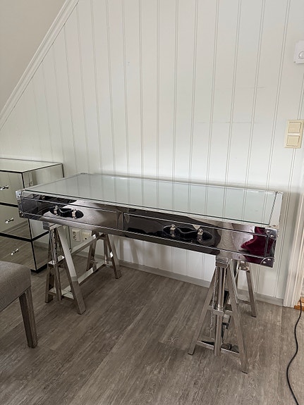Pent brukte voksesenger fra IKEA 2 stk, Jysk spisebord i tre, flott hylle