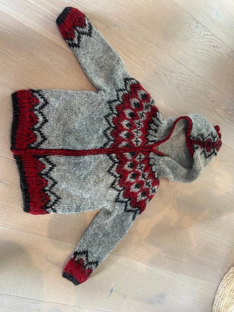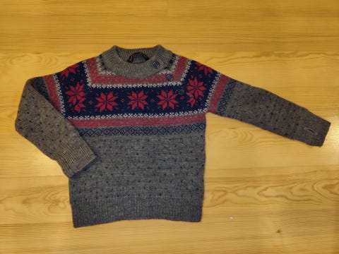 Ullgenser fra Lanullva 4 år, strikket ullbukse 4 år, fleecehals og ullsokker