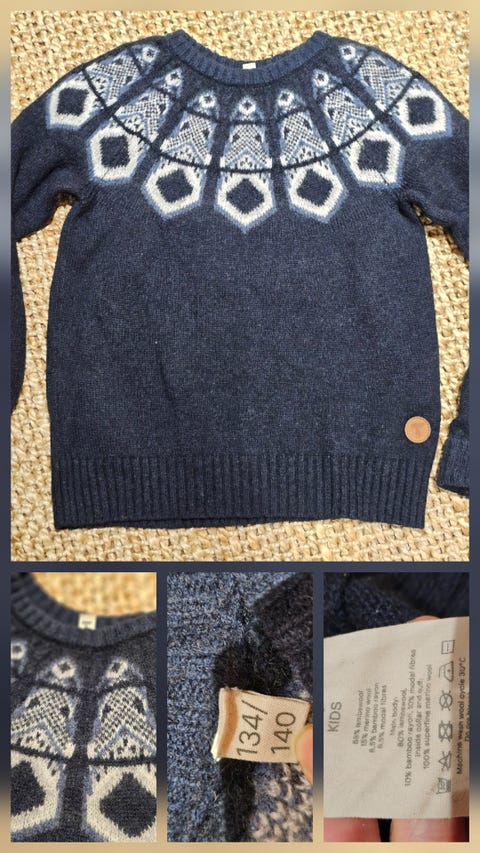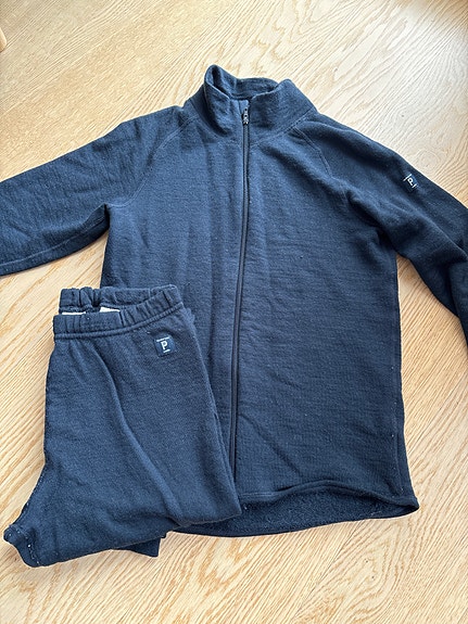Klespakke: Ullbukse og ullgenser i str. 134-140 cm i farge mørkeblå.