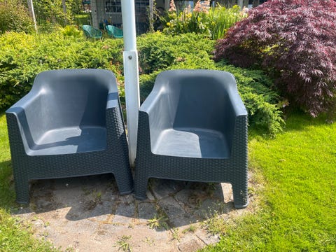Utemøbler i plast gis bort
