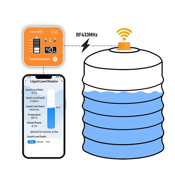 Bud ! Trådløs nivåsensor for vanntank – appvarsling, temperaturmåling og alarm