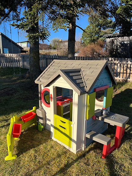 Smoby Lekehus Chef med benk, bord, gjerde, ringeklokke og vanntank