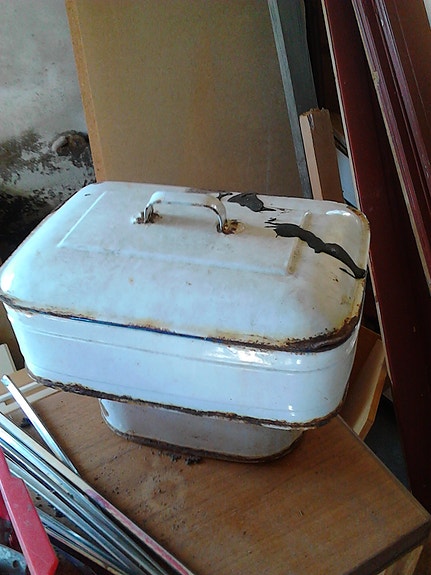 Vanntank til vedkomfyr / Emaljert / Sjelden