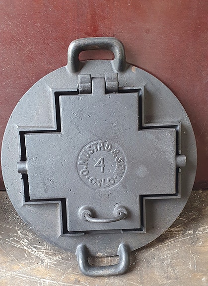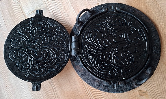 Kromkakejern med vendering for svartovn/vedkomfyr og vaffeljern