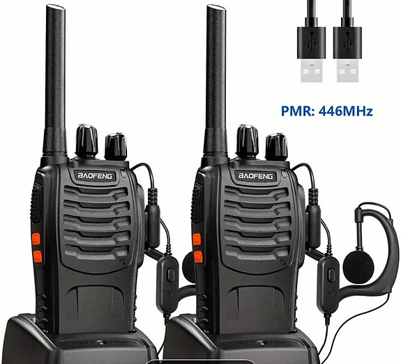 Oppladbare Walkie Talkie 2 stk – Lang rekkevidde, LED-skjerm, lommelykt // ✅
