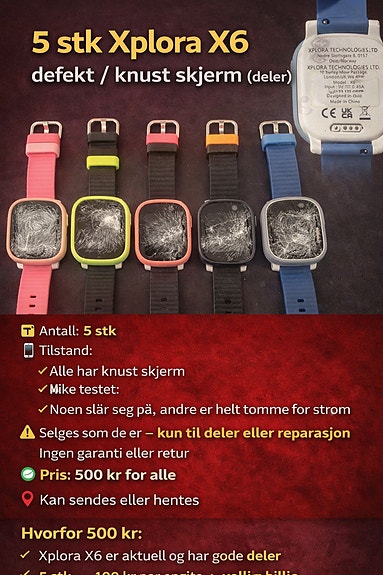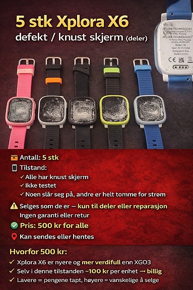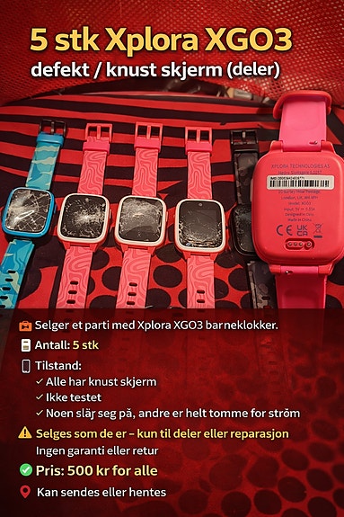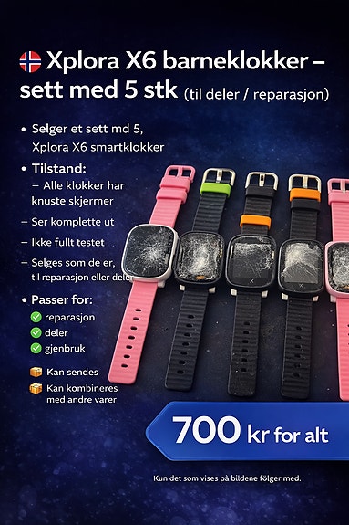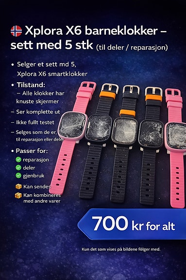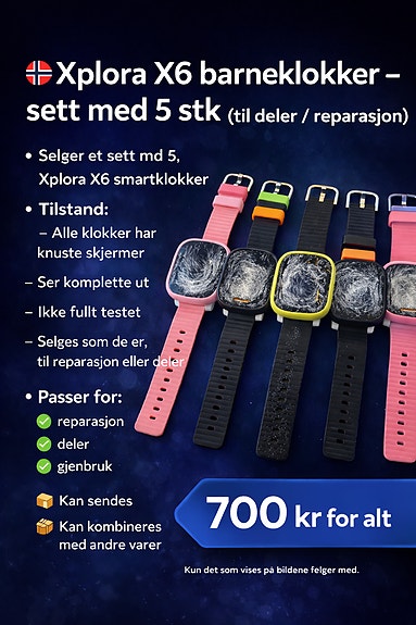 #159 - 5 stk Xplora X6 – barneklokker (deler / reparasjon)