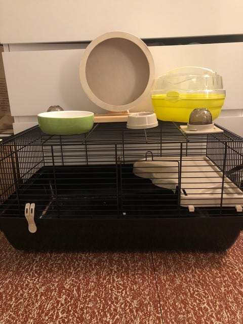 Hamster bur med masse utstyr.