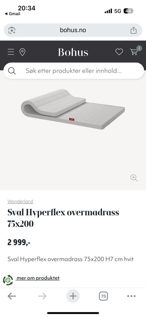 Seng m/madrass 75x200 gis bort