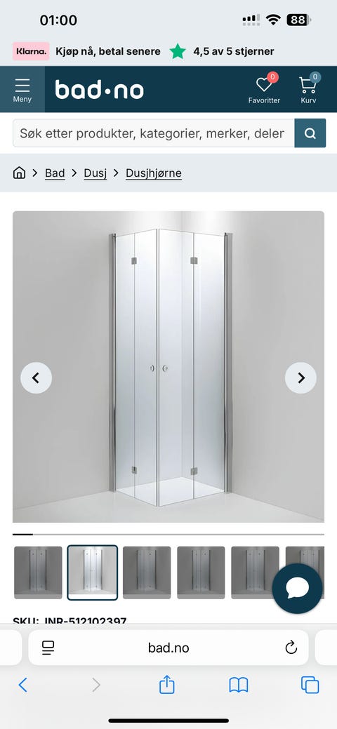 Dusj hjørne med flexi dører.
