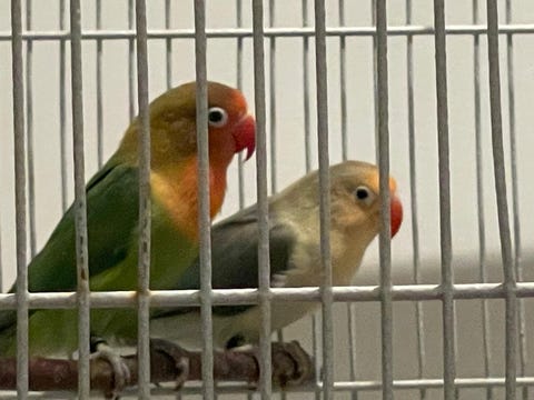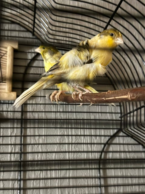 Kanari han og hun med bur