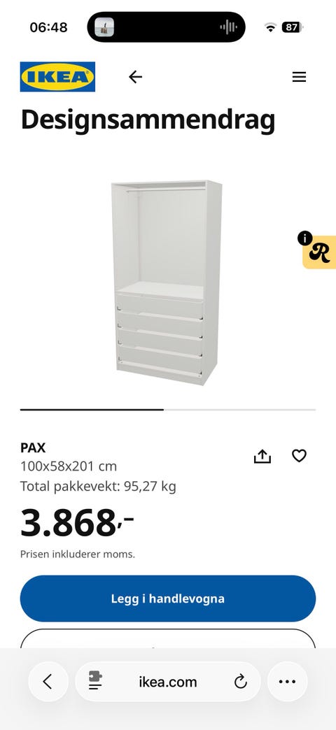 Garderobeskap selges