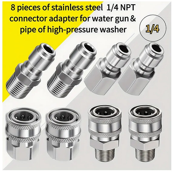 Sett 1/4 tommers rustfritt stål NPT hurtigkobling 8 stk