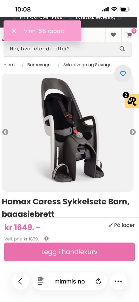Hamax sykkelsete