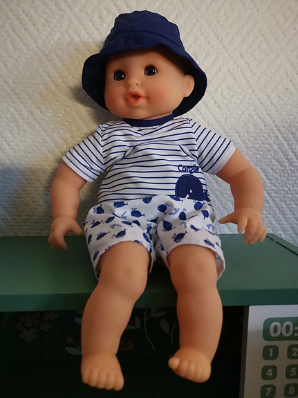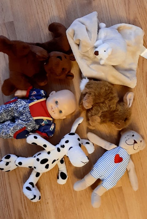 Kosedyr og dukke med vogn