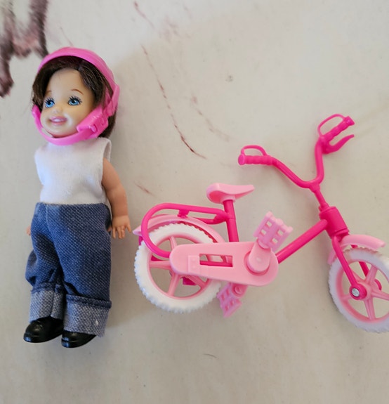 Vintage liten barbie dukke Ryan fra " Happy family " med sykkel/ Mattel, 90 tals