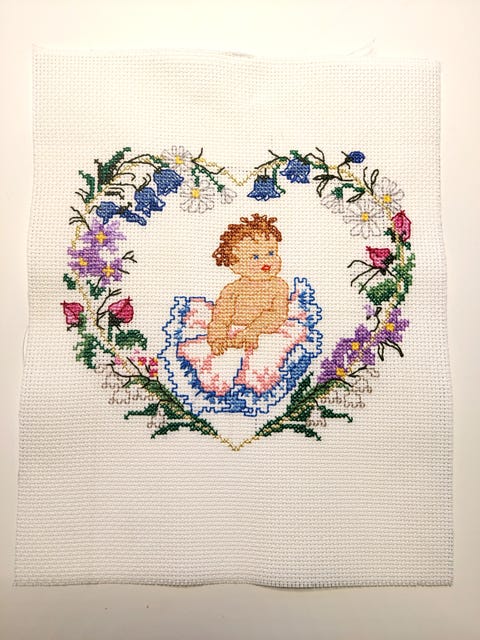 Håndbrodert Dåpsbilde "Hjerte" 20 *25 cm