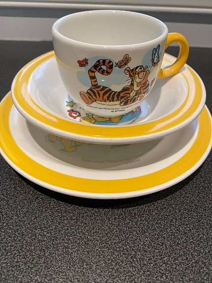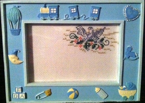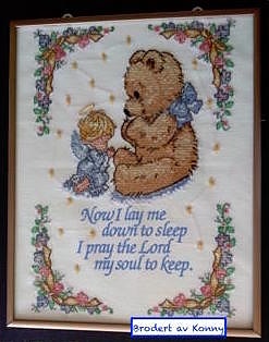 Håndbrodert Dåpsbilde m/bamse Gutt 16,5 * 12,5