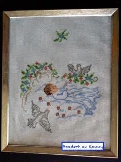 Håndbrodert Dåpsbilde Fugler 20,5 * 25,5 cm