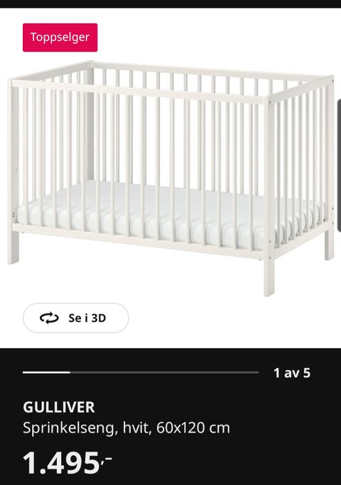 2 stk IKEA GULLIVER sprinkelseng hvit med madrass