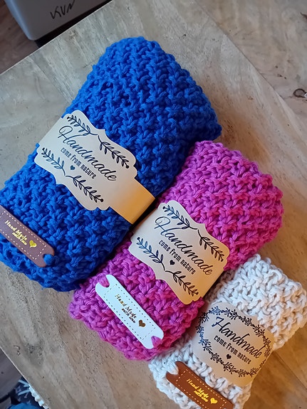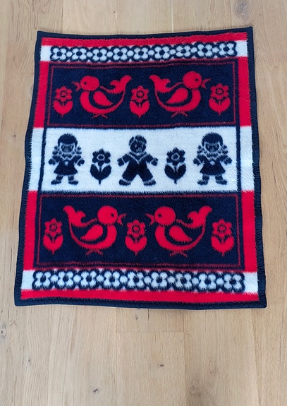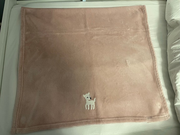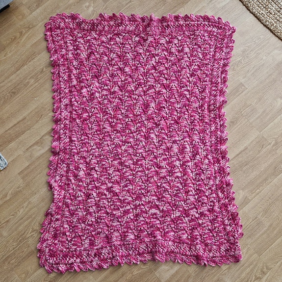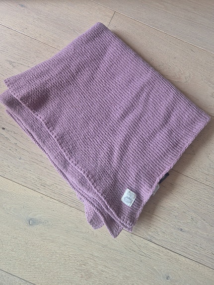 Håndstrikket babyteppe i delikate rosatoner – unikt håndarbeid