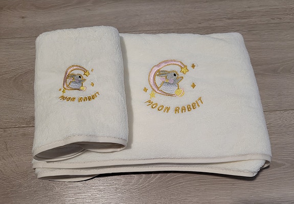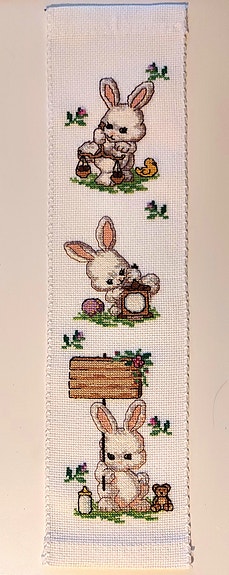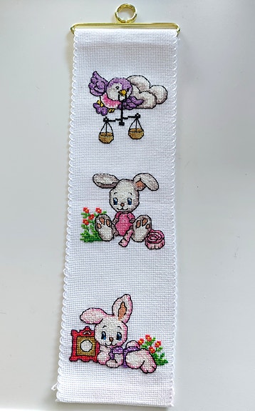 Håndbrodert Dåps Åkle Ugle, Hare, Kanin m/Gullfarget beslag