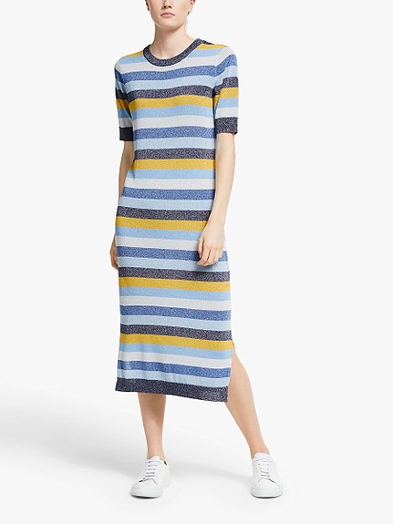 Stripete kjole med rødt belte