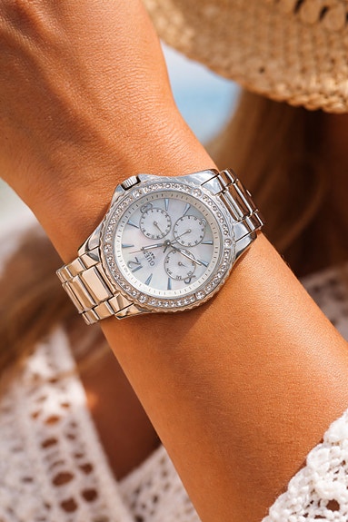Ekte Guess klokke med perlemor skive og nytt batteri