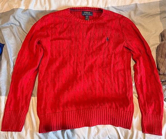 Ralph Lauren Polo cable knit barn 14-16 rød