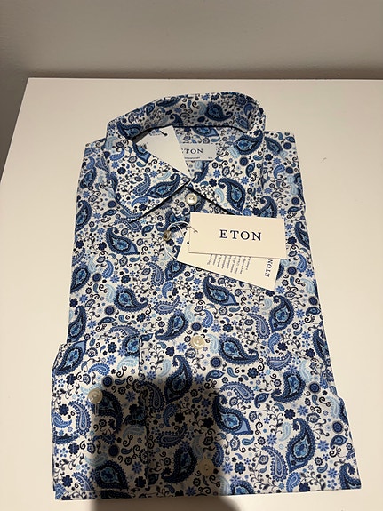 Eton skjorte 39/15 1/2 blå mønster